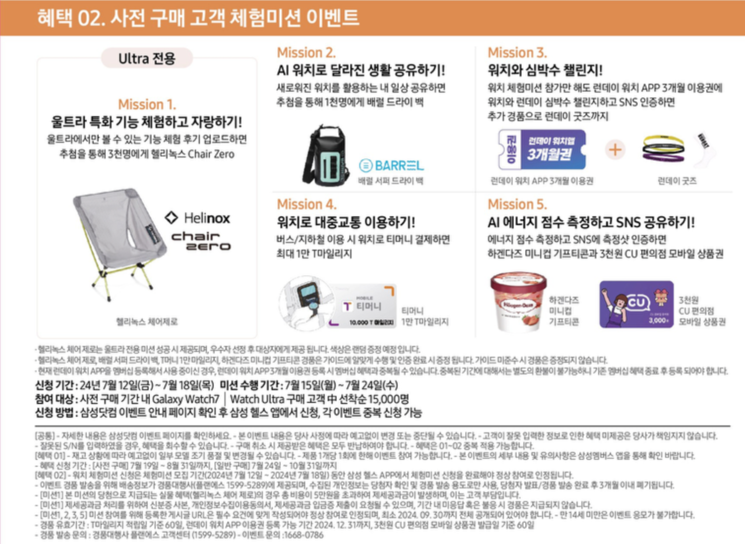 갤럭시워치7 울트라를 사전예약 하게 되면 할인혜택도 받을 수 있으며 사은품까지 받을 수 있어요.